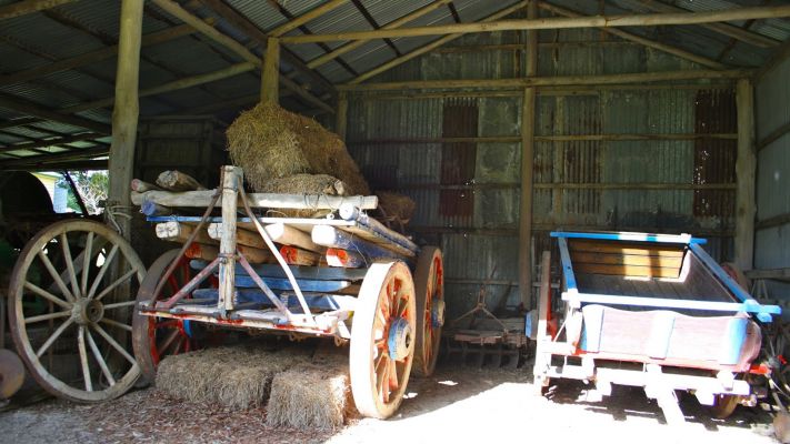 Old Farm BuildingsCategories » Guided Tour04th May 2017 | by the Friends of Nyerimilang During the period 1894 to 1936 at the Nyerimilang property, the farm caretaker's family lived in a small four room wooden shack a few hundred metres away from the main homestead. There was a strong divide kept between the Stuart family, their servants and farm hands. Living conditions in the farm shack were a far cry from the comforts enjoyed in the Nyerimilang homestead. The farm caretaker and his family were permitted to do some recreational fishing in the Gippsland Lakes during their spare time. But they were always required to present their catch to the Stuart family, who took first pick. Today you can take a look through the old farmer's shack, shearing sheds and other farm buildings. Some of the historic farm equipment and wagons remain.« Previous | Next »